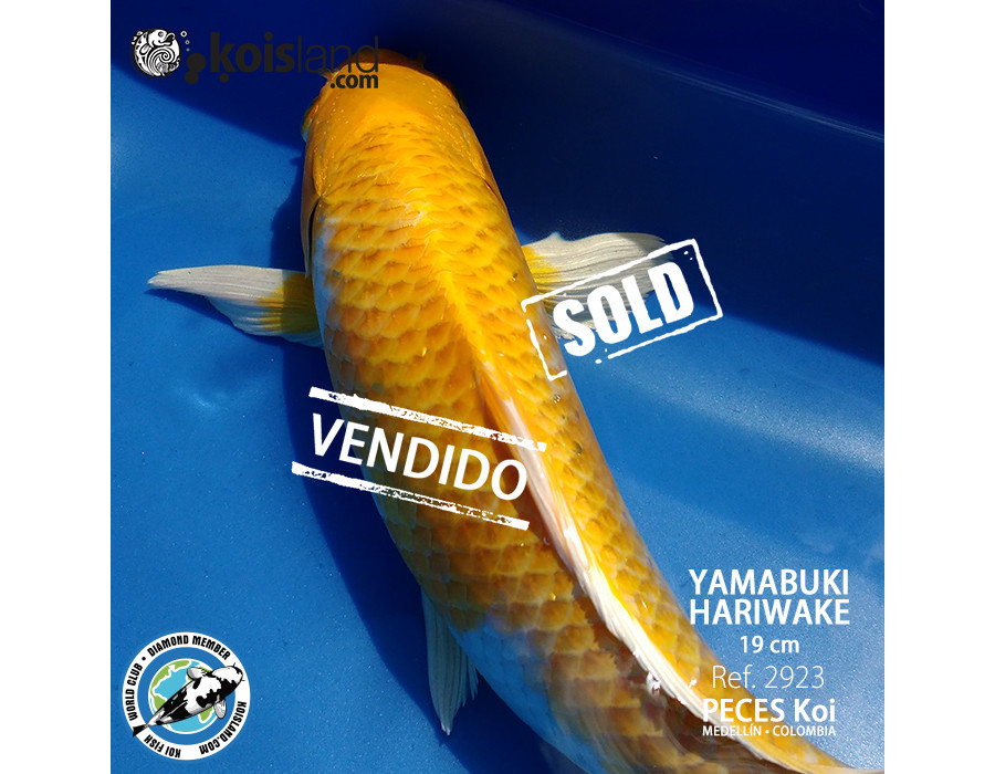 Hermoso pez koi Yamabuki Hariwake, la característica principal de estos peces es tener la base de su cuerpo blanca junto con patrones de color amarillo tenue. Este es un pez koi muy escaso y atractivo.