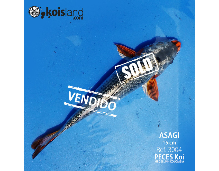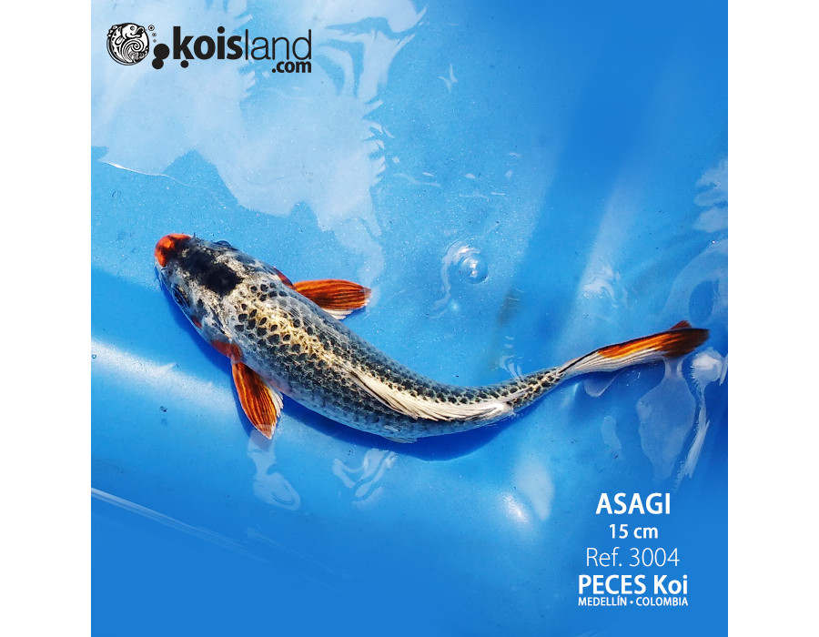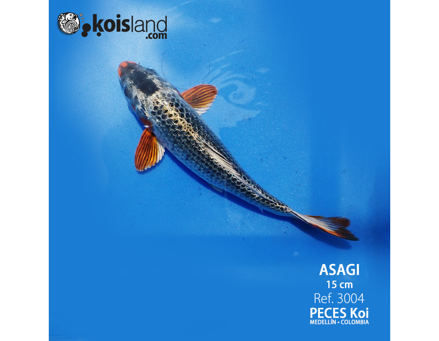 Este Koi ASAGI es perfecto de cabeza a cola. Es un pez koi muy jóven, pero es una gran promesa de campeón. la forma de su cuerpo es bastante simétrica, su cabeza con punta y laterales rojizos son una de las características de los ASAGI y este las respeta hasta su cola, el patrón de sus escamas es bastante marcado. Este pez es y será un individuo de muy alto valor cuando llegue a su adultez. Como este, se encuentran muy pocos en nuestra región.