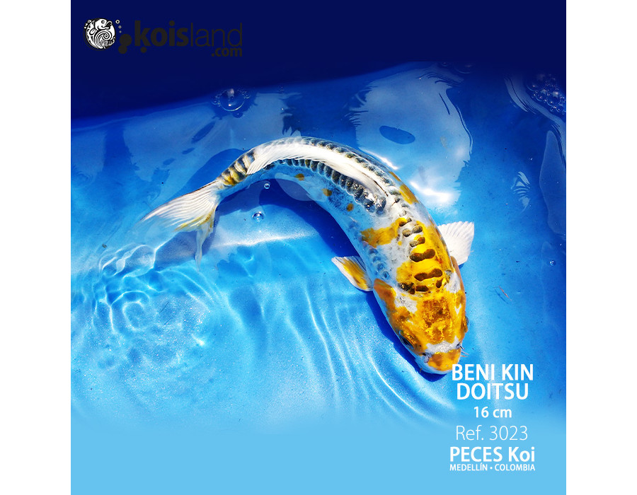 Los peces koi Beni KIN Doitsu tienen la característica de tener patrones de color muy marcados, al ser doitsu carece de escamas en su cuerpo, solo veremos sus escamas muy marcadas en su lomo. Si vemos sus patrones de color notaremos que sobre su base metálica se acentúan colores muy marcados.