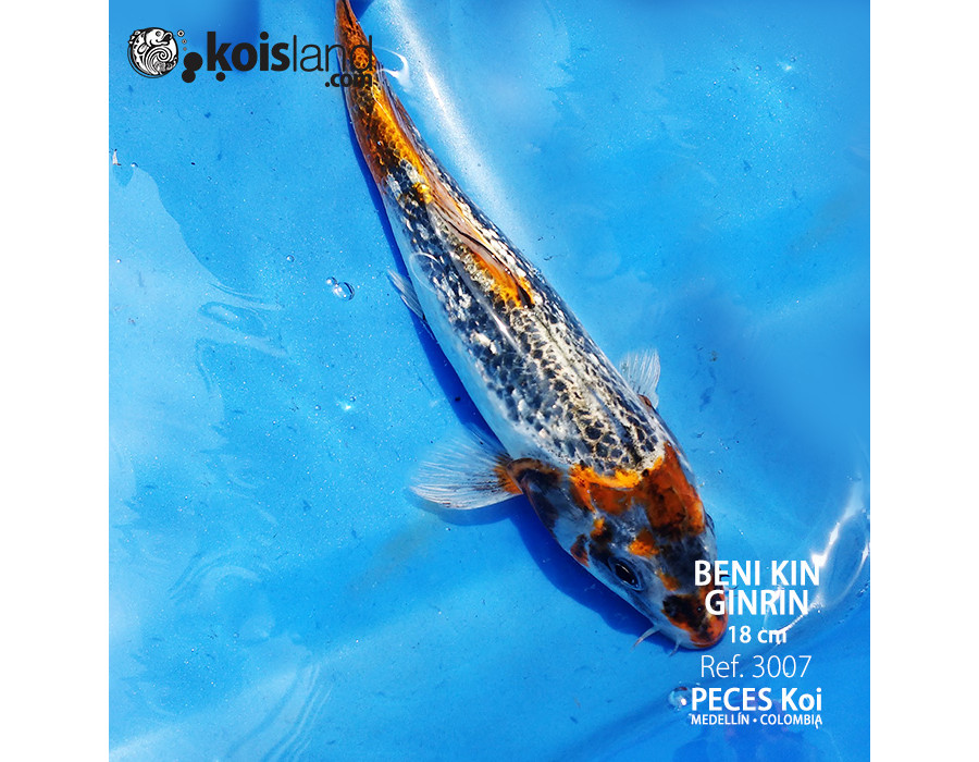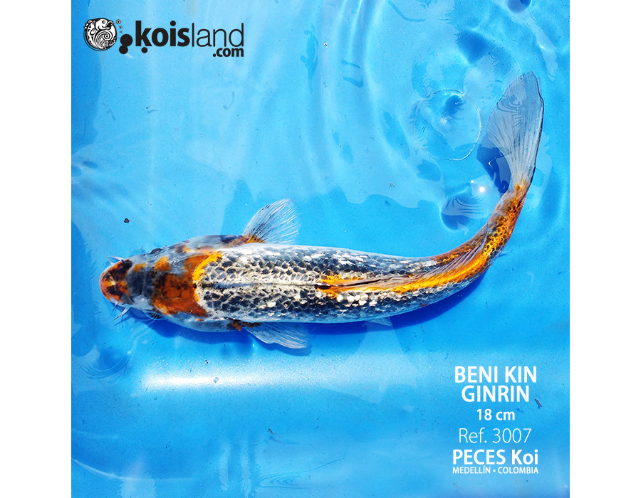 Los peces koi Beni KIN Ginrin (escama de diamante) tienen la característica de tener patrones de color muy marcados, al ser Ginrin lo veremos brillar bajo el sol.