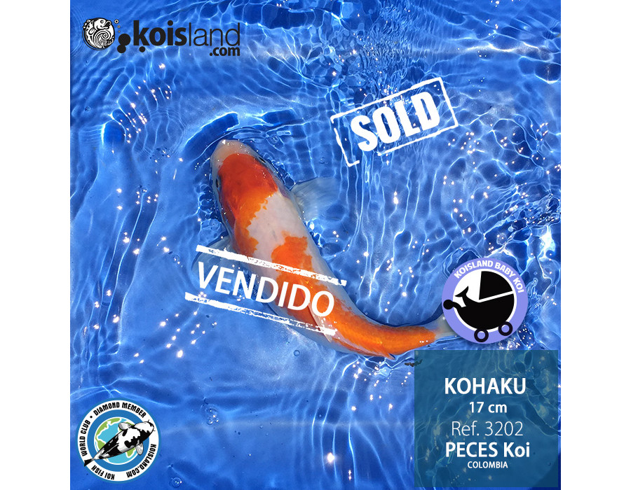 Este koi kohaku es un pez de 3 etapas que ha iniciado a sacar sus patrones rojizos muy marcados, la característica principal de estos peces es tener la base de su cuerpo blanca junto con patrones de color rojizos.