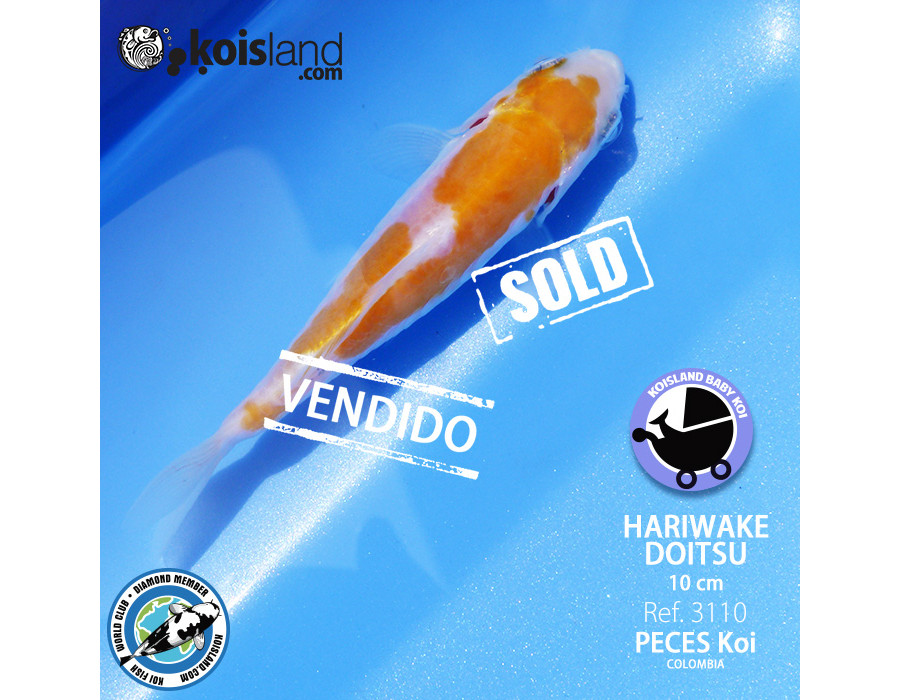 Hermoso pez koi Hariwake Doitsu (sin escamas), la característica principal de estos peces es tener la base de su cuerpo blanca junto con patrones de color amarillos o naranjas. Este pez en particular tiene un patrón bastante uniforme. Será un muy buen ejemplar digno de admirar.